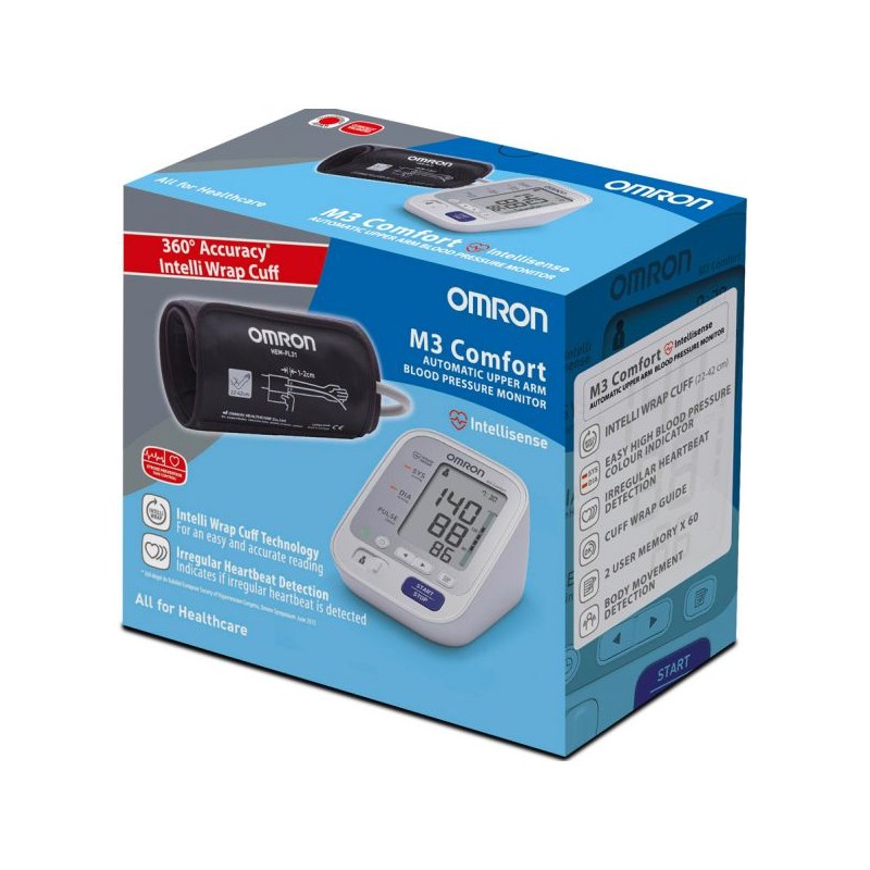 The Omron M3 Comfort offers the quality and accuracy of the Omron M3 blood pressure monitor with the advanced technology of the Intelli Wrap cuff that provides 360° measurement. So, no matter what position the cuff is in on the upper arm, you will be able to take an accurate blood pressure reading. This makes it ideal for home users.