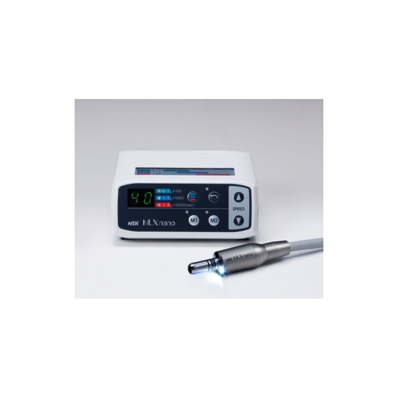 The NLX Nano system combines user-friendly ergonomic design with lightweight titanium. The NLX Nano micromotor weighs a mere 61 grams – up to 40% less than competitive units – making it the lightest motor in its class. Smooth, quiet, powerful, and versatile, the NLX Nano feature the market's first LED fiber optic micromotor. The NLX Nano has attachments available for all specialty areas and the system can be easily integrated into virtually any dental delivery system.
